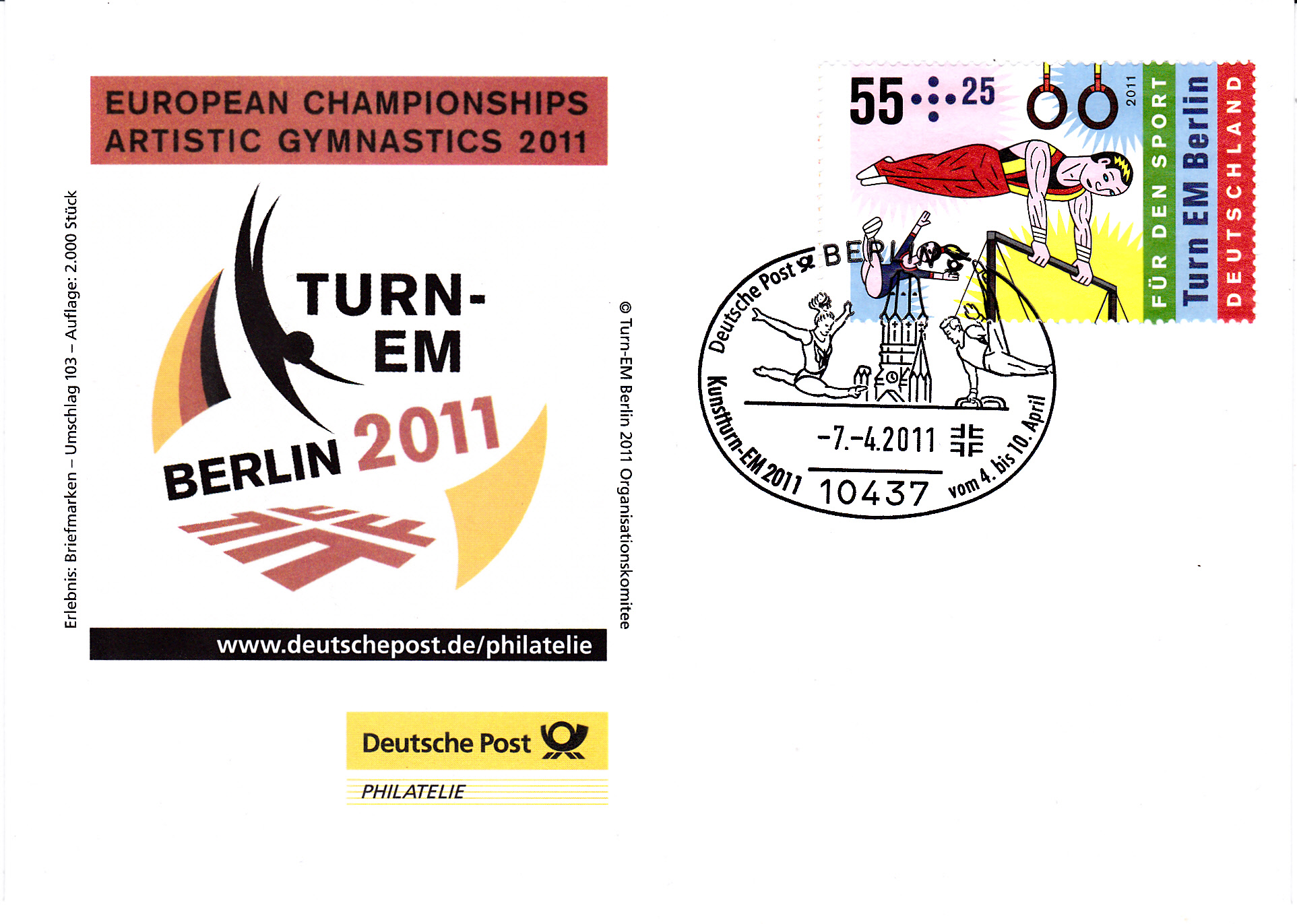 An Ersttag der Marken "Für den Sport" 2011 gab es bei den Turn-Europameisterschaften auch einen Sonderstempel.