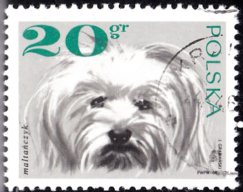 Auf dieser Marke aus Polen (MiNr 1898) ist der Kopf eines Malteser zu sehen.