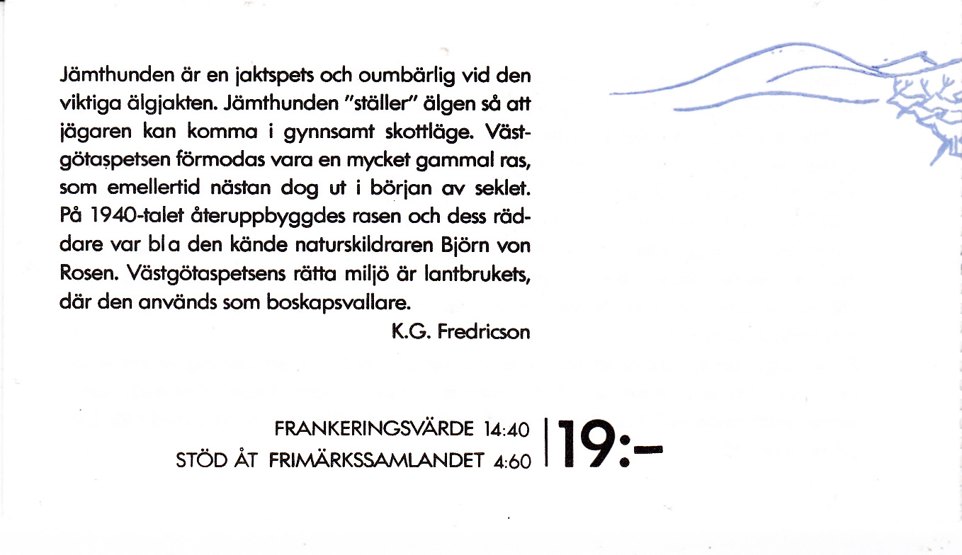 In Schweden ist eine Marke (MiNr 1569) mit der Abbildung von zwei Jämthunden erschienen.