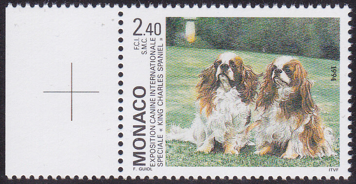 Zur Internationale Hundeausstellung in Monte Carlo ist in Monaco eine Marke (MiNr 2173) mit zwei King Charles Spaniel erschienen.