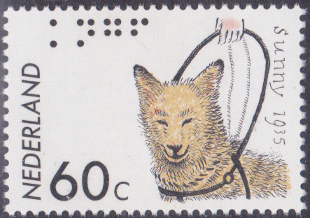 Zum Jubiläum "50 Jahre Königlich Niederländische Stiftung für Blindenhunde" ist in den Niederlande eine Marke (MiNr 1263) erschienen mit einem Blindenhund erschienen.