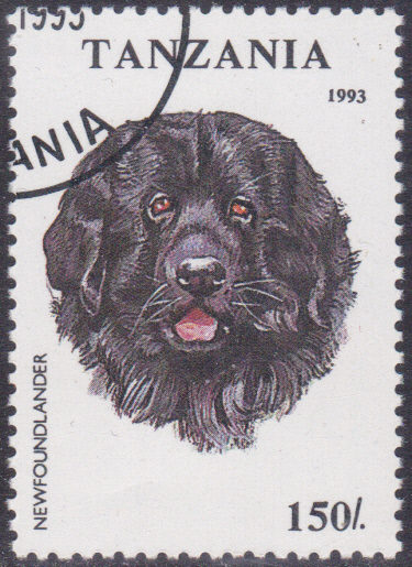 Einen Neufundländer-Kopf zeigt diese Marke aus Tansania (MiNr 1604).