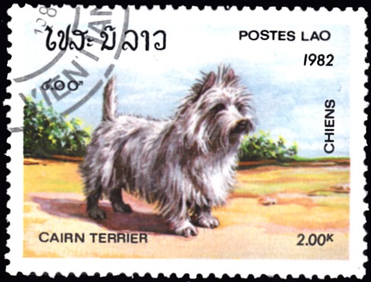 Diese Marke aus Laos (MiNr 576) zeigt einen Cairn Terrier.