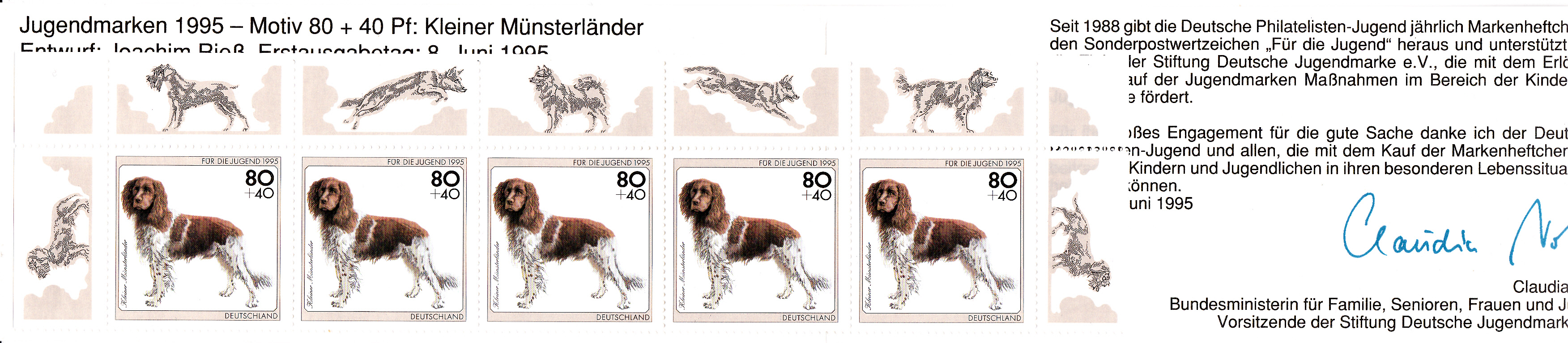 Dem Markenheftchen lag auch ein Sonderdruck bei mit Entwürfen zur Jugendmarke zu 100+50Pf mit dem Motiv "Rauhhaardackel".