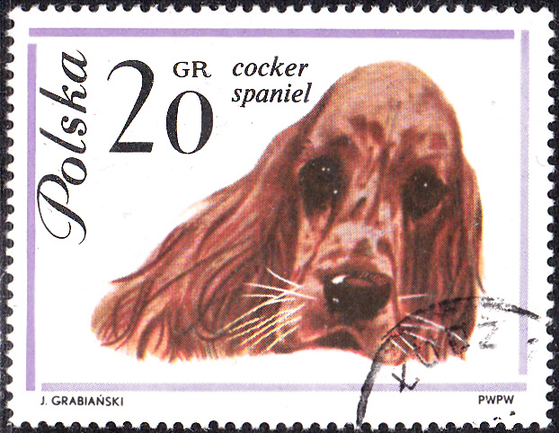 In einer polnischen Serie mit Hunderassen gibt es auch diese Marke (MiNr 1374) mit dem Kopf eines Cocker Spaniels.
