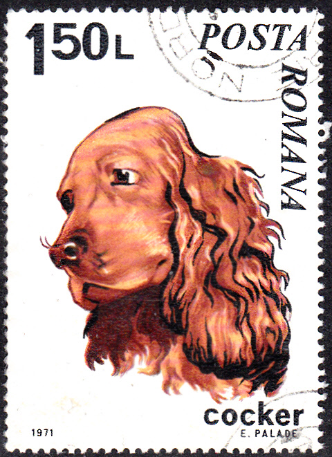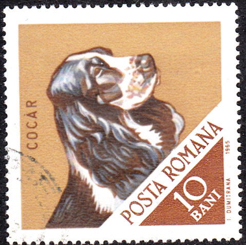 Auch in Rumänien ist einer Serie "Jagdhunde" eine Marke (Minr 2471) mit dem Kopf eines Englischen Cocker Spaniel erschienen.