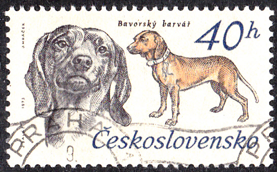 Auf dieser Marke aus der Tschechoslowakei (MiNr 2156) werden der Kopf und ein kompletten Hund dieser Rasse gezeigt.