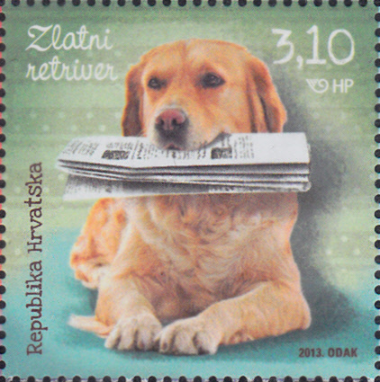 In einer Serie "Haustiere: Hunde" erschien in Kroatien diese Marke (MiNr 1069) mit der Abbildung eines Golden Retriever als Zeitungsüberbringer.