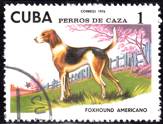 Hier eine Marke aus Kuba (MiNr 2109) mit einem American Foxhound.