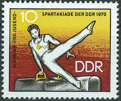 Einen Turner am Seitpferd zeigt auch diese DDR-Briefmarke aus dem Jahr 1970.