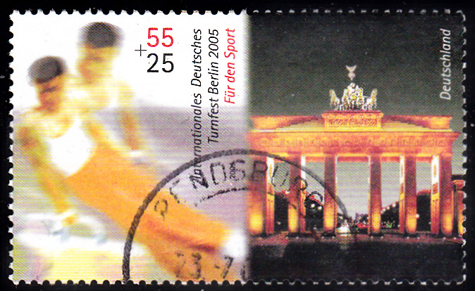 Zum Internationalen Deutschen Turnfest in Berlin 2005 gab es bei der Deutschen Post diese Sondermarke (MiNr 2441) mit einem Turner am Seitpferd.
