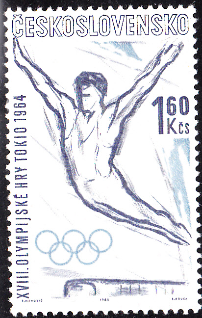In einer Serie zu den Olympischen Spielen in Tokio ist in der Tschechoslowakei eine Marke (MiNr 1437) mit einem Turner beim Sprung erschienen.