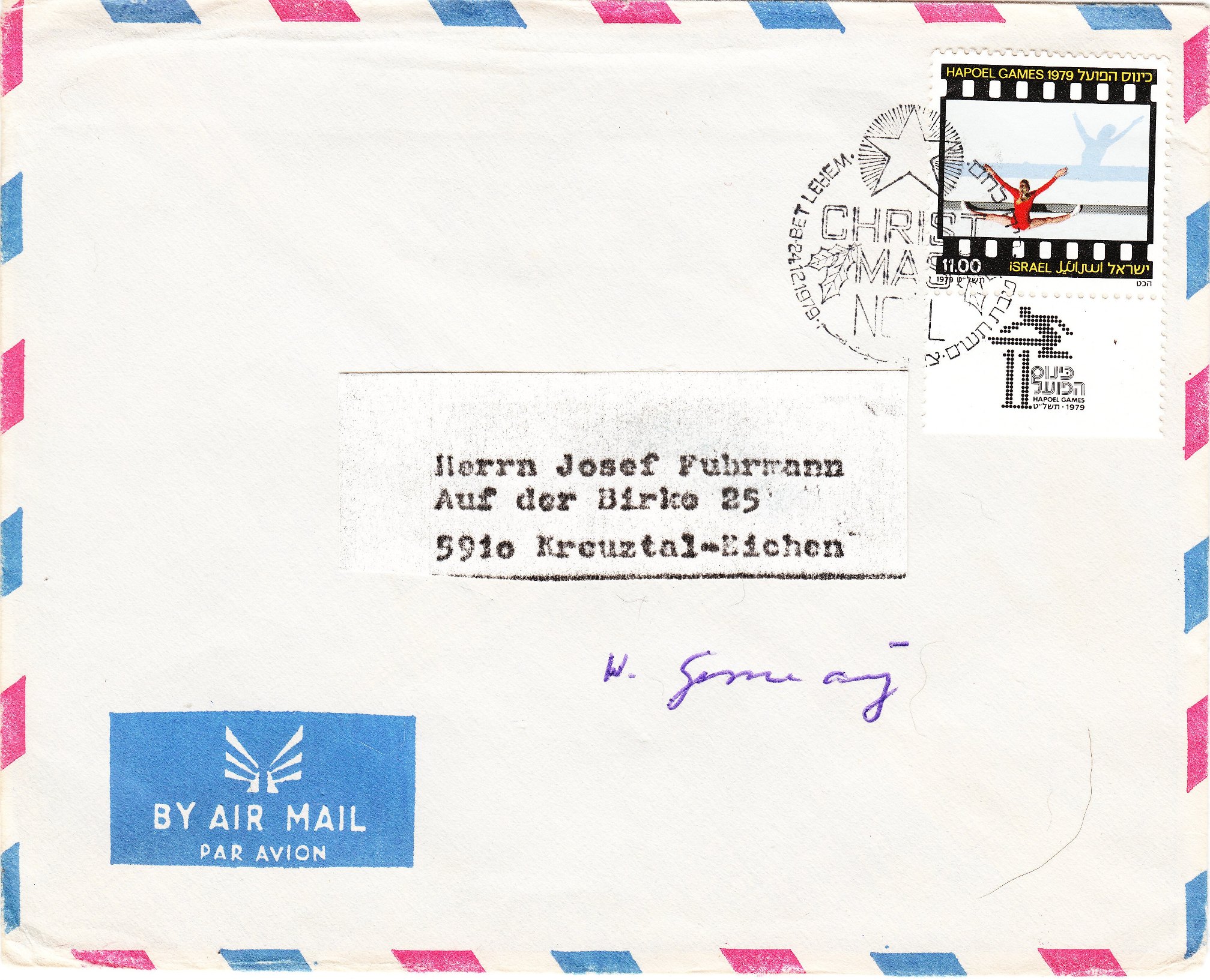 Dieses zu den "HAPOEL GAMES" 1979 in Israel ausgegebene Postwertzeichen zeigt ein interessantes Motiv einer Turnerin auf dem Schwebebalken: