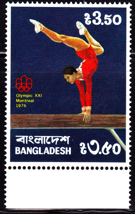 Am 29.11.1976 erschien in Bangladesch eine Serie mit sechs Werten zu den Olympischen Spiele in Montreal. Auf dem Wert zu 3,50 Taka (MiNr 84) wurde eine Kunstturnerin am Schwebebalken abgebildet.