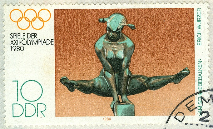 "Am Schwebebalken" titelt eine künstlerische Arbeit von Erich Winzer (1913-1986), die als Motiv für die MiNr. 2503 (10 Pfennig, mehrfarbig) ausgewählt wurde und zur DDR-Ausgabe "Olympische Sommerspiele 1980" gehört. Erstausgabetag war der 22. April 1980.