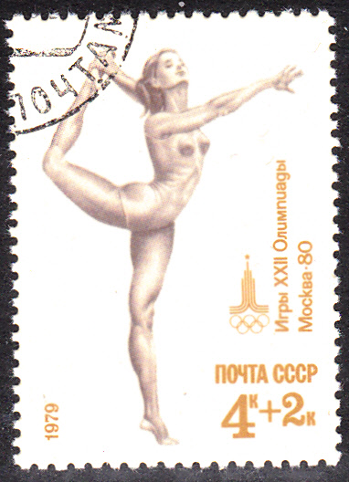 In einer der Serie der UdSSR zu den Olympischen Spielen in Moskau erschien auch eine Marke (MiNr 4830) mit einer Bodenturnerin.