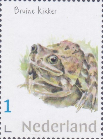 Auf einer Marke aus Irland (MiNr 912) ist ein Grasfrosch (Rana temporaria) abgebildet.