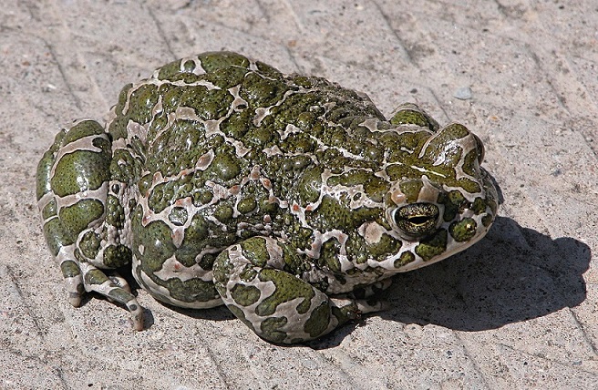 "Die Wechselkröte (Bufotes viridis, Synonym: Bufo viridis, gelegentlich Pseudepidalea viridis), auch Grüne Kröte genannt, ist ein Froschlurch aus der Gattung Bufotes innerhalb der Familie der Kröten (Bufonidae). Nach heutiger Auffassung handelt es sich nicht um eine einheitliche biologische Art, sondern um eine Artengruppe aus mehreren evolutionären Linien. Allein in Europa lassen sich demnach wohl fünf verschiedene Formen trennen. Die genaue systematische Stellung und Abgrenzung dieser Taxa ist derzeit teilweise noch unklar.", und vieles Interessante mehr zu diesem Froschlurch hier: