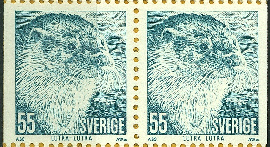 Aus dem MH 42 Schwedens stammt dieses waagerechte Paar dieser Motivmarke "Otter".