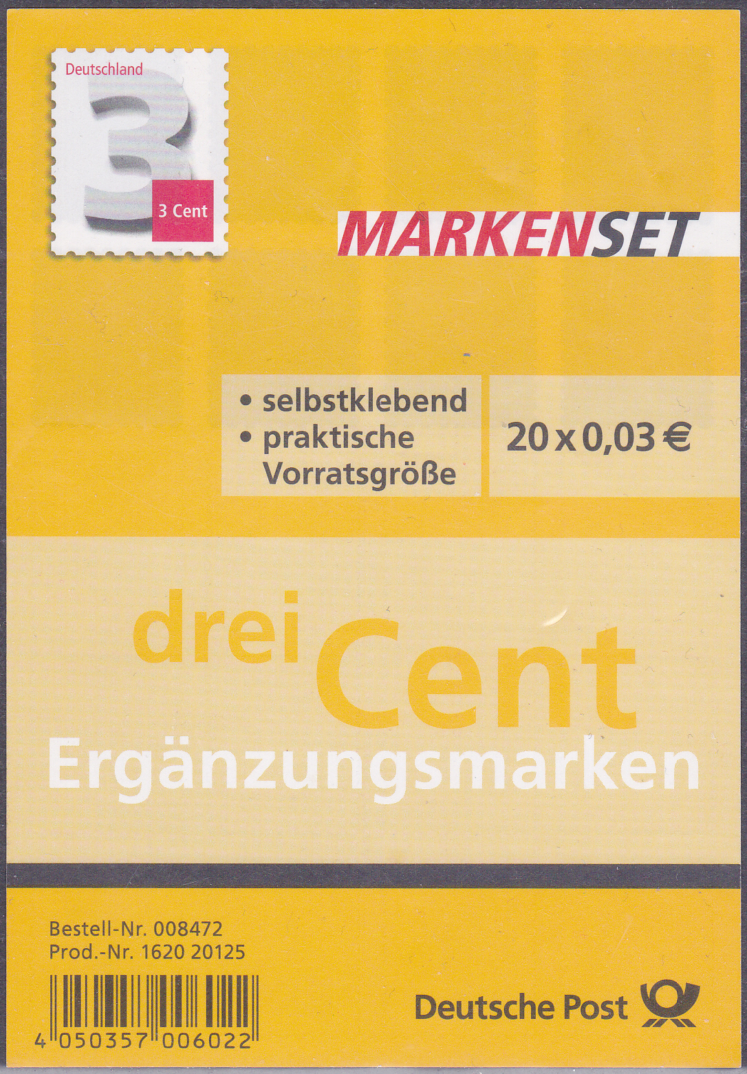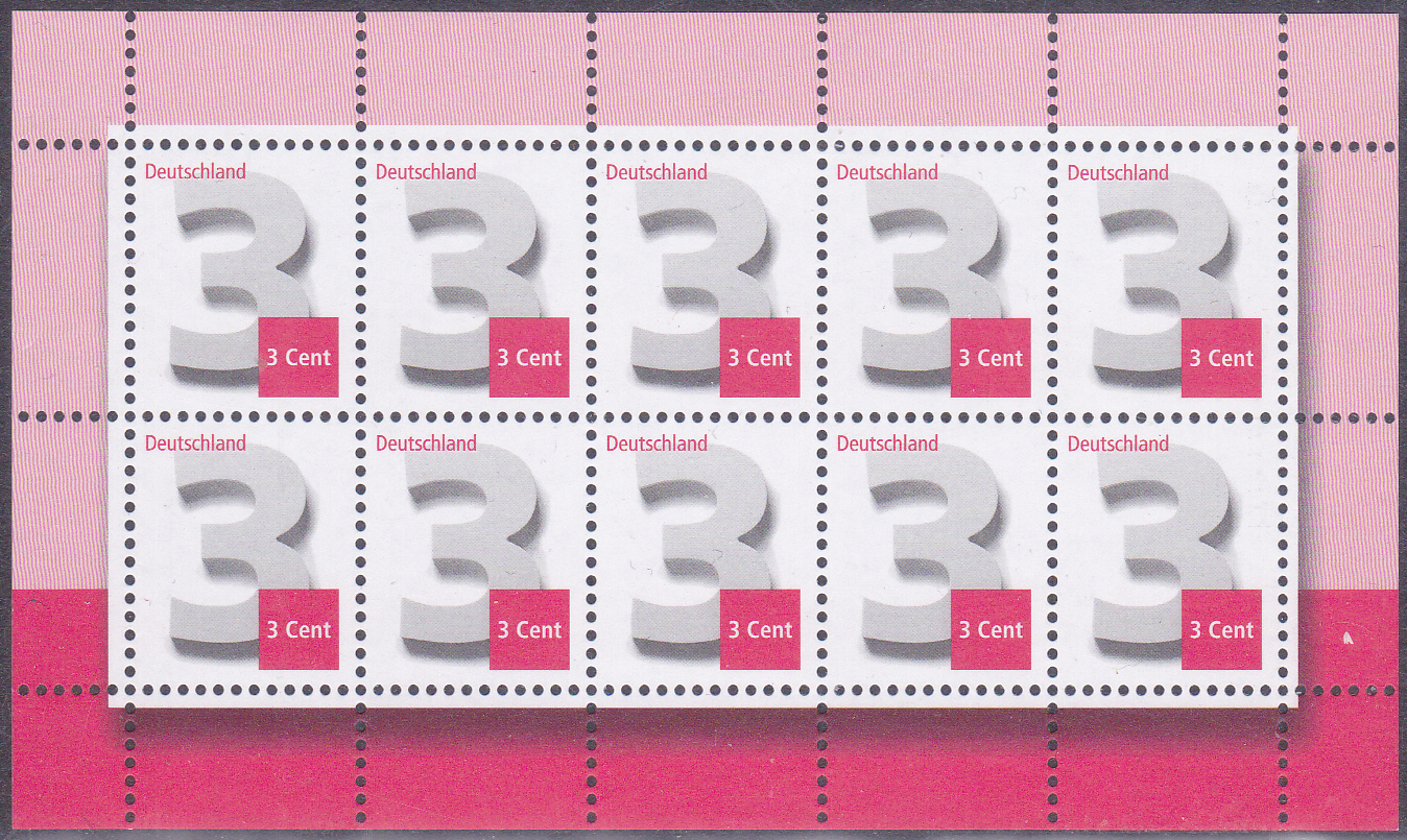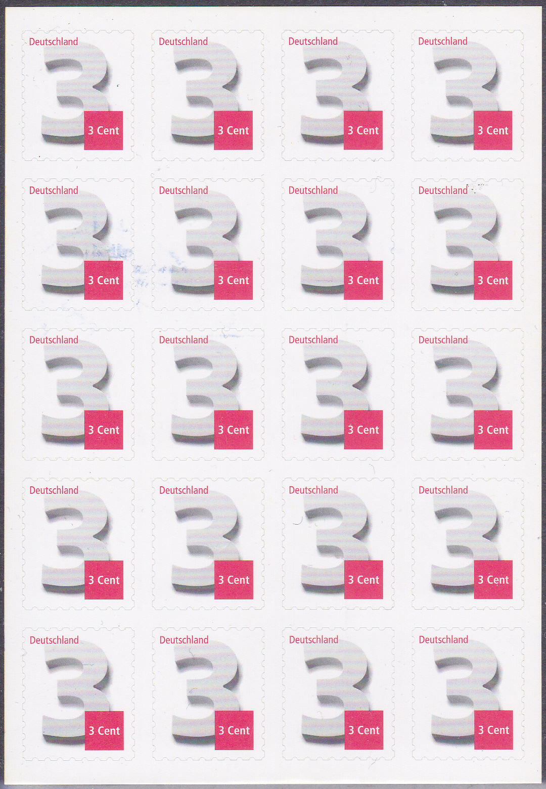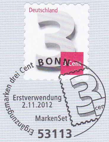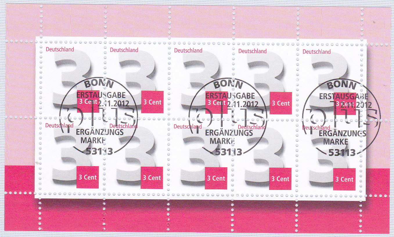 Am 2. November 2012 erschien eine Marke zu 3 Cent (MiNr 2964) mit der Ziffer "3". Sie war notwendig wegen einer Portoerhöhung für den Inlands-Standardbrief von 55 auf 58 Cent.