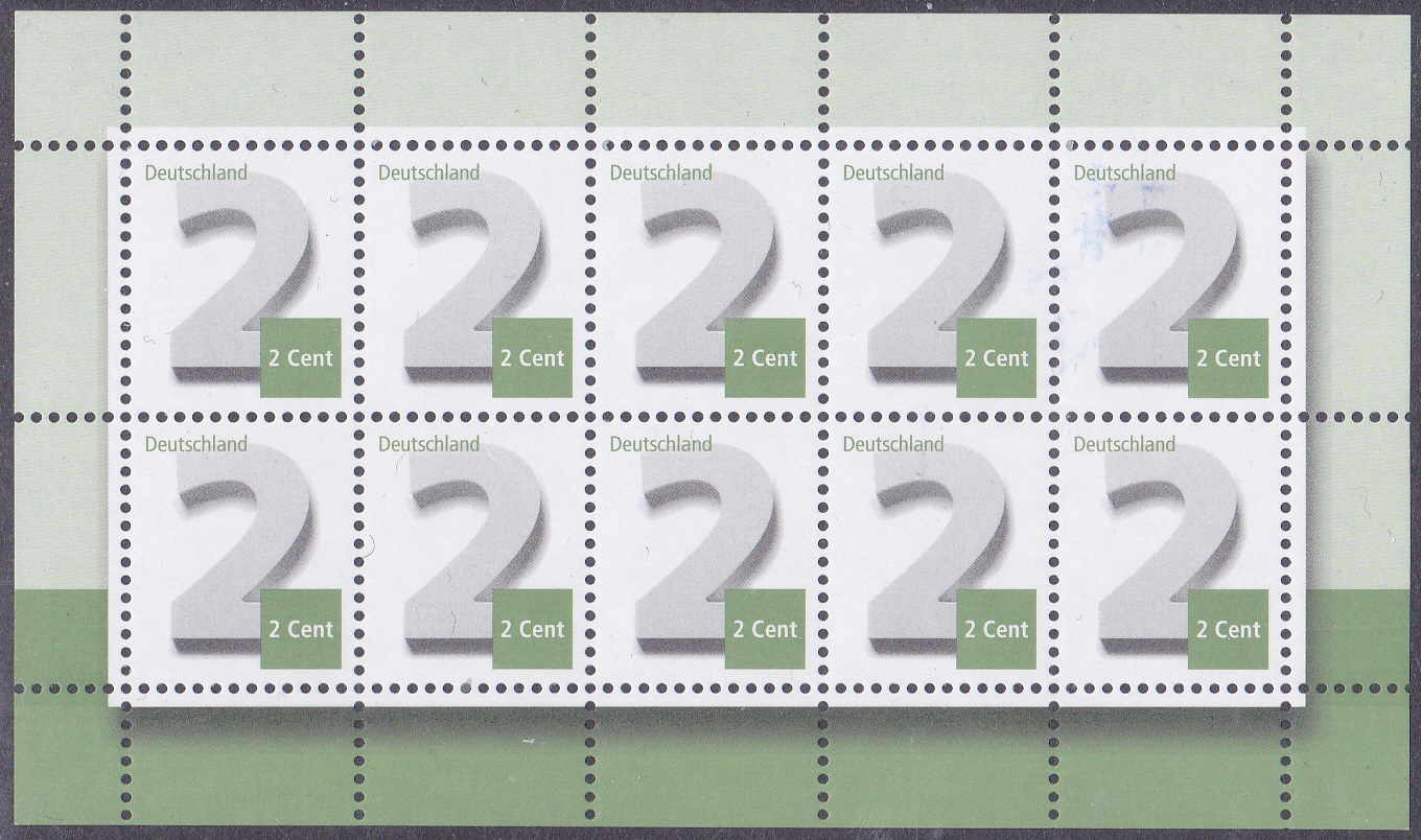 Am 5. Dezember 2013 erschien eine Marke zu 2 Cent (MiNr 3042) mit der Ziffer "2". Sie war notwendig wegen einer Portoerhöhung für den Inlands-Standardbrief von 58 auf 60 Cent an 1.1.2014.