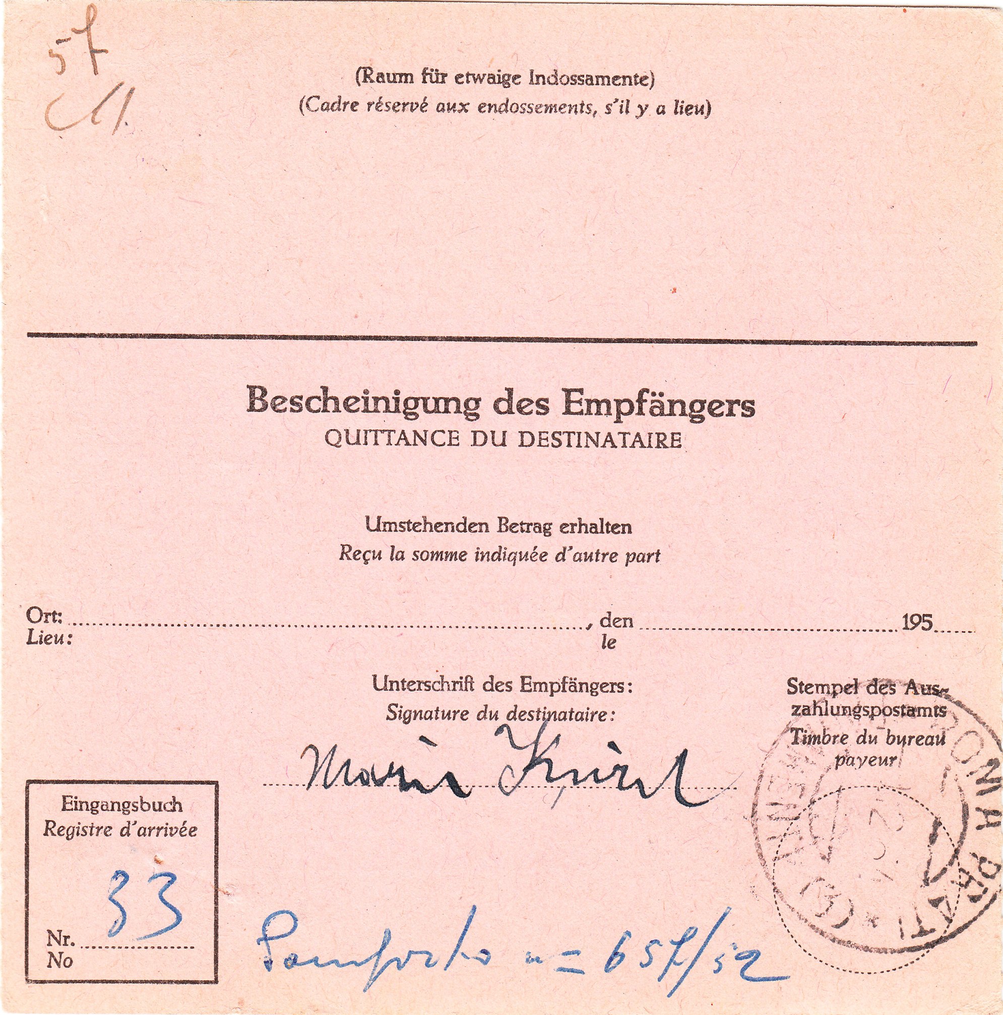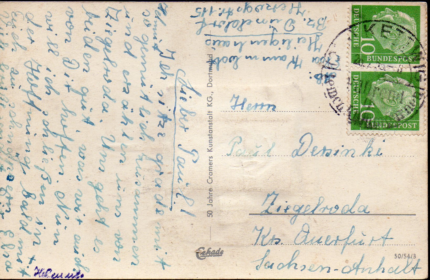 Edit: Ich sehe gerade im hochgeladenen Bild rechts oben im Rand eine fleckige Stelle. Das ist keine Beschädigung, hier ist die Stempelfarbe etwas verwischt.