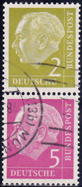 Gestempelter Zusammendruck MiNr S 17 (2Pf+5Pf) aus Markenheftchenblatt MiNr H-Blatt 5 aus dem Markenheftchen MiNr 2.
