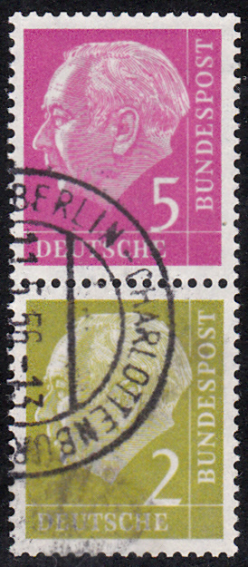 Gestempelter waagerechter Zusammendruck MiNr W 9 (R5+2Pf) aus Markenheftchenblatt MiNr H-Blatt 7 aus dem Markenheftchen MiNr 3.