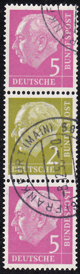 Gestempelter Zusammendruck MiNr S 20 (5Pf+2Pf+5Pf) aus Markenheftchenbogen MiNr MHB 3.