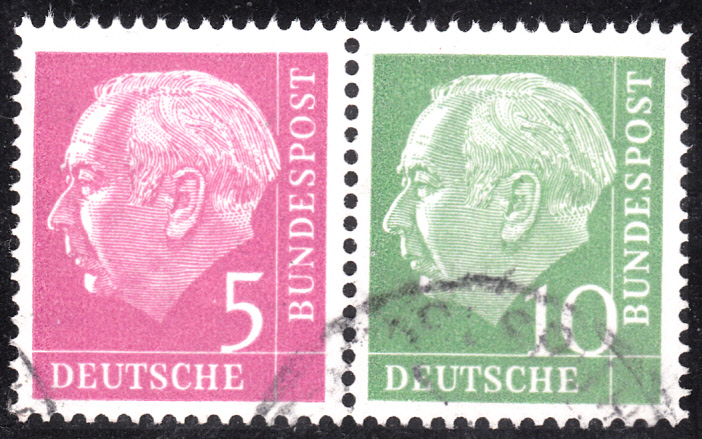 Gestempelter waagerechter Zusammendruck MiNr W 19 X (5Pf+10Pf) aus Markenheftchenblatt MiNr H-Blatt 8 X aus dem Markenheftchen MiNr 4 X.