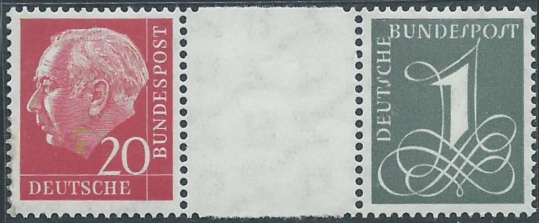 Dann folgen einige postfrische Zusammendrucke. Hier der mit der Michel-Nummer WZ16 b X2 (20/Leerfeld/1):