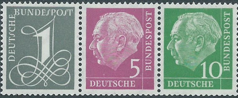 Waagerechter postfrischer Zusammendruck 1 + 5 + 10 Pf, Michel-Nummer W 18 X: