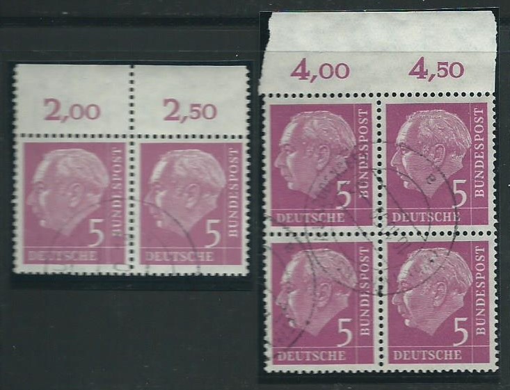 Bei den Oberrändern im Plattendruck gibt es bei den Werten zu 5 und 8 Pf die Varianten senkrecht "durchgezähnt" und "nicht durchgezähnt". Darauf achtet der Spezialsammler auch gerne ;) Die beiden sollen hier gleich mal im Bild vorgestellt werden: