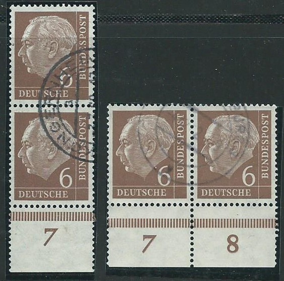 Bogenzähler gibt es auf beiden senkrechten Rändern, also links und rechts. Das soll am Beispiel des 7 Pf-Wertes gezeigt werden: