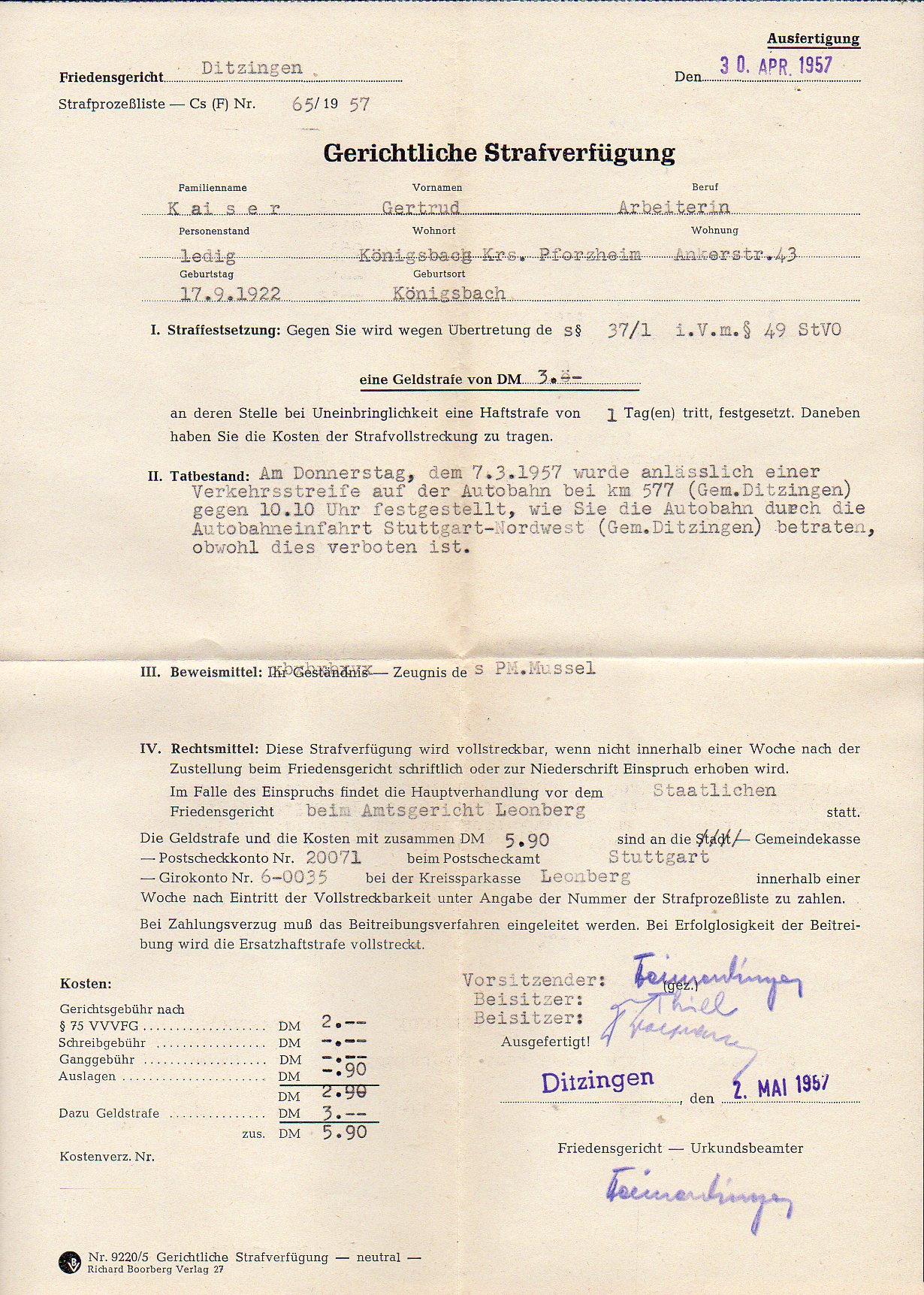 Die Gerichte wollen meist ja nur unser bestes, nämlich unser Geld, heute wie vor 60 Jahren :D