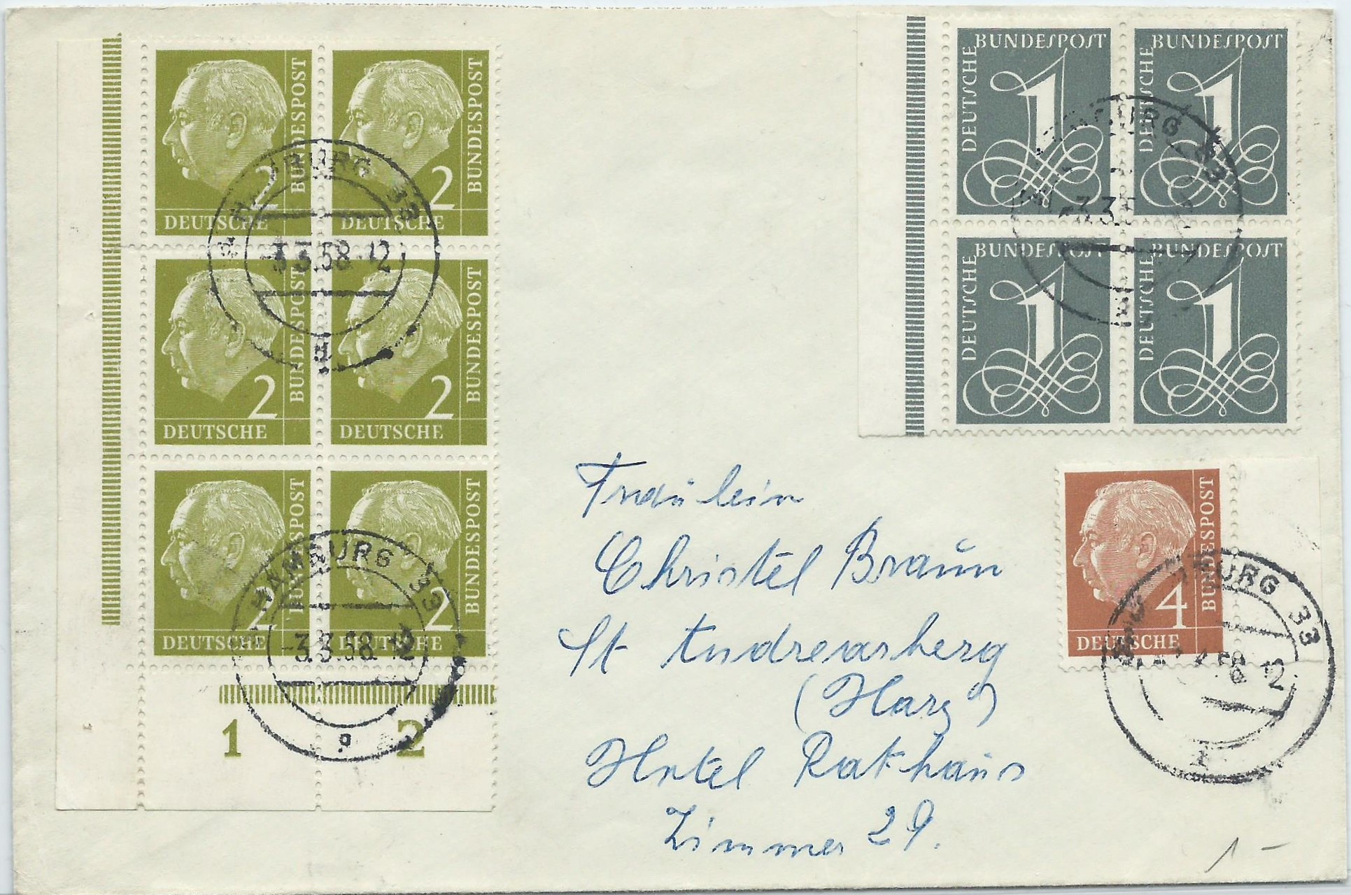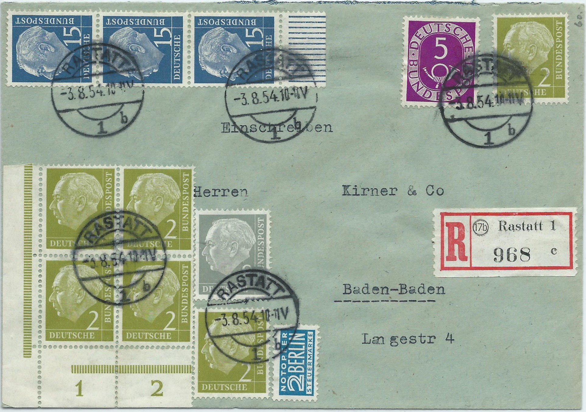 heute zeige ich an dieser Stelle einfach mal 3 Belege mit Heuss-Frankaturen: