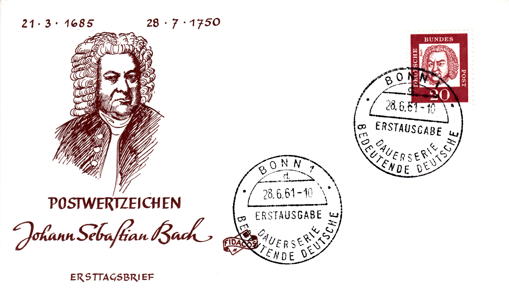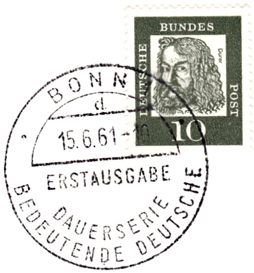 auch auf einem FDC mit der Marke zu 20Pf, die ein paar Tage später erschienen ist, wurde der Ersttagsonderstempel mit dem Kennbuchstaben "d." abgeschlagen.
