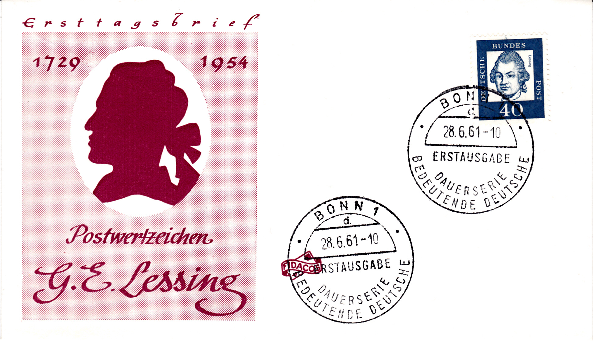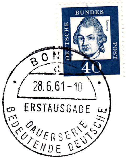Und auch auf diesem FDC der Marke zu 40Pf vom gleichen Ausgabetag ist der Ersttagsonderstempel mit dem Kennbuchstaben "d." zu finden.
