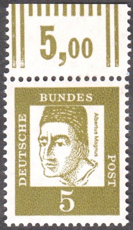 5 Pf Dauerserie Bedeutende Deutsche, Oberrandstück mit Reihenwertziffer "5,00" (= rechte obere Bogenecke), der rechte Bogenrand fehlt:
