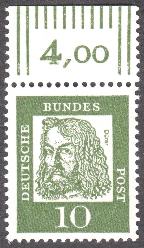 10 Pf Dauerserie Bedeutende Deutsche, Oberrandstück mit Reihenwertziffer "4,00":
