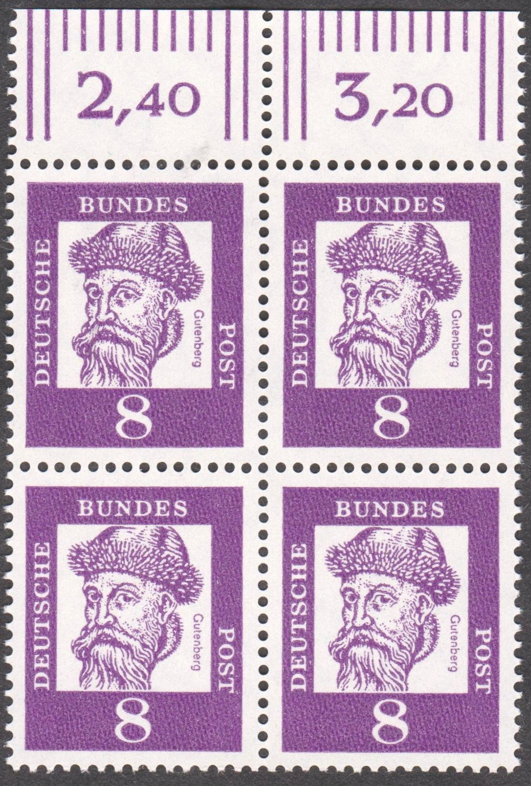 8 Pf Dauerserie Bedeutende Deutsche, Viererblock vom Oberrand: