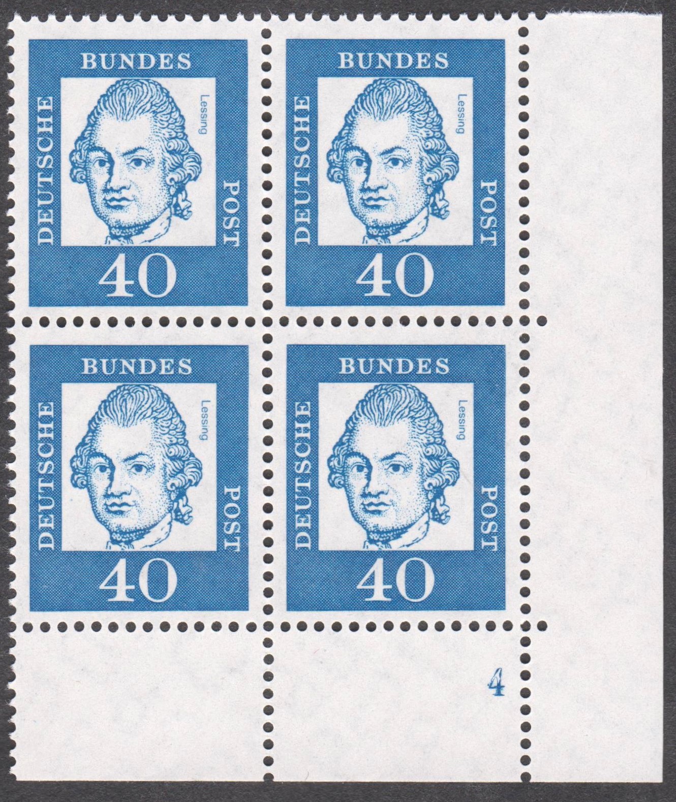 40 Pf Dauerserie Bedeutende Deutsche, Viererblock aus der rechten unteren Bogenecke mit Formnummer "4":