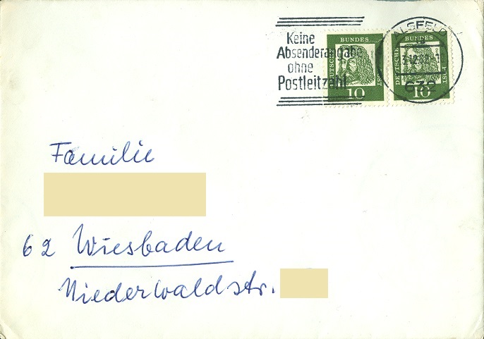 Anschließend wurde die Postkarte mit einem Wert zu 15 Pfennig der Dauerserie Bedeutende Deutsche korrekt freigemacht am 23.09.1963 erneut aufgegeben und erreichte somit schließlich ihren Empfänger.