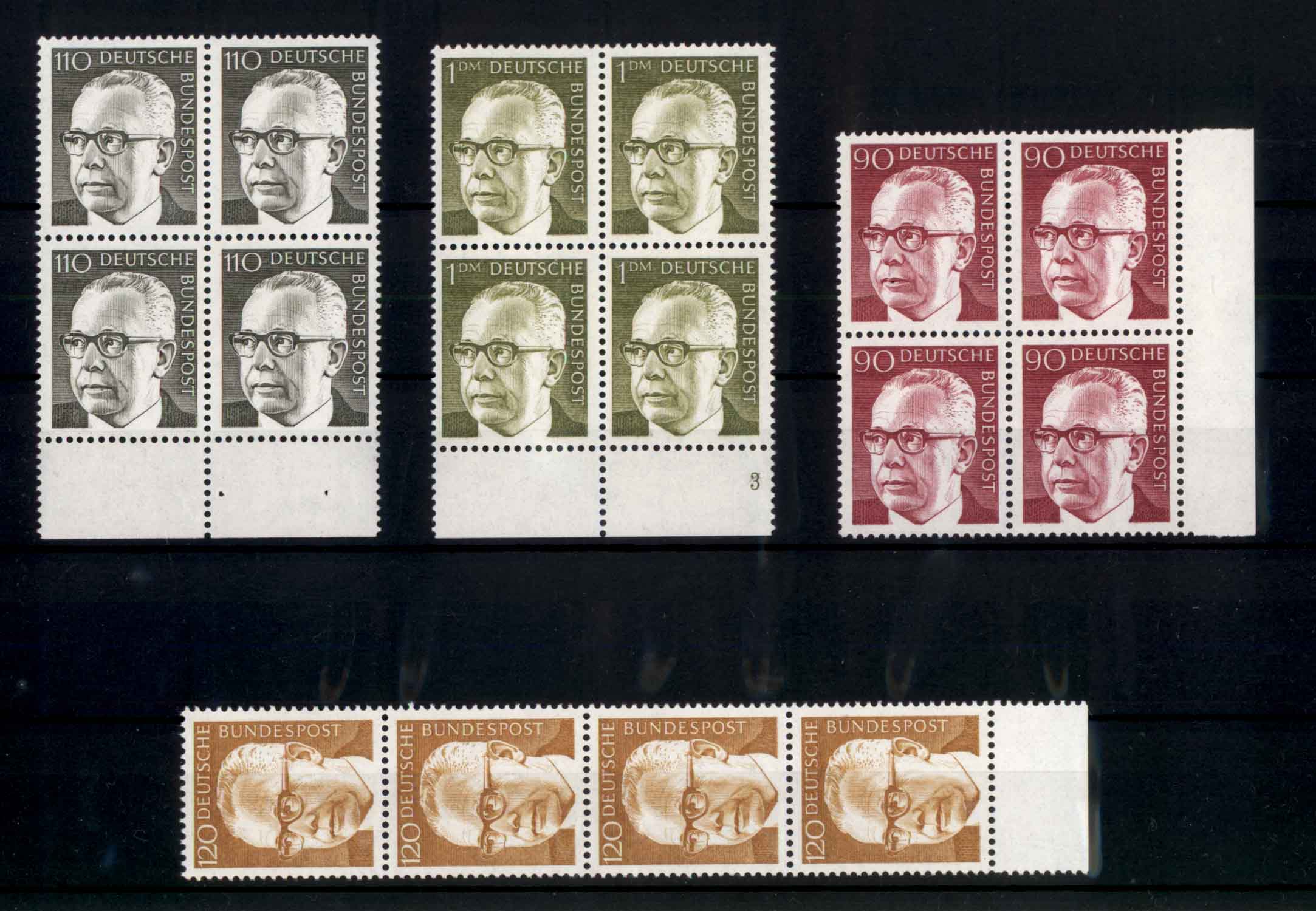 Formnummer 3 auf dem Unterrand des Viererblocks des 1 DM Wertes