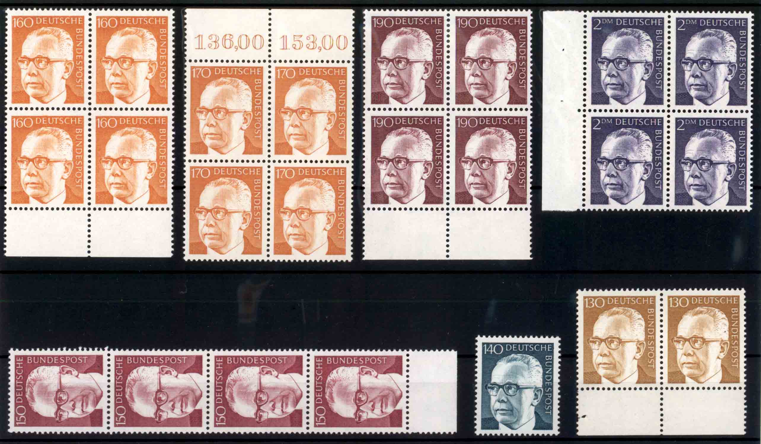 Da in diesem Thema bisher noch keine postfrischen Einheiten gezeigt wurden, hole ich dies hier mal mit einigen höheren Nennwerten dieser reinen Bogen-Dauerserie nach: