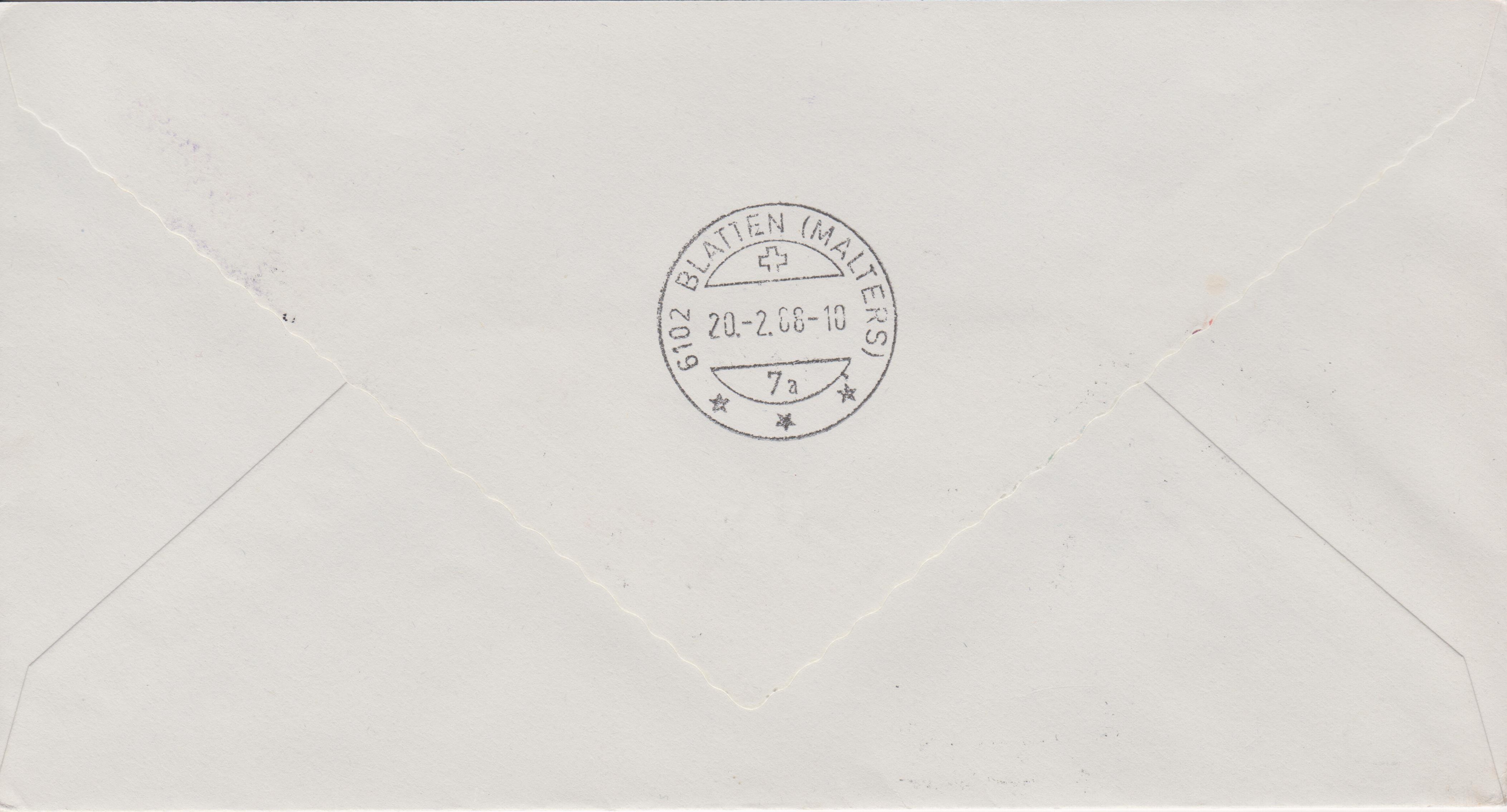 In 6102 BLATTEN (MALTERS) in der Schweiz wurde am 06.04.1978 rückseitig ein Tagesstempel als Ankunftstempel abgeschlagen: