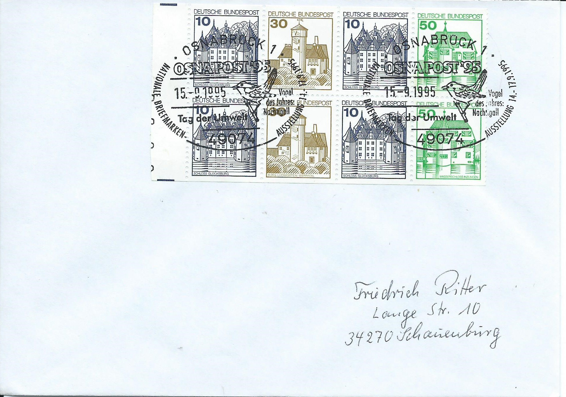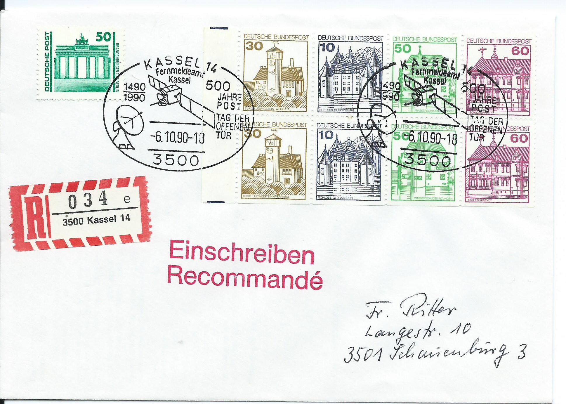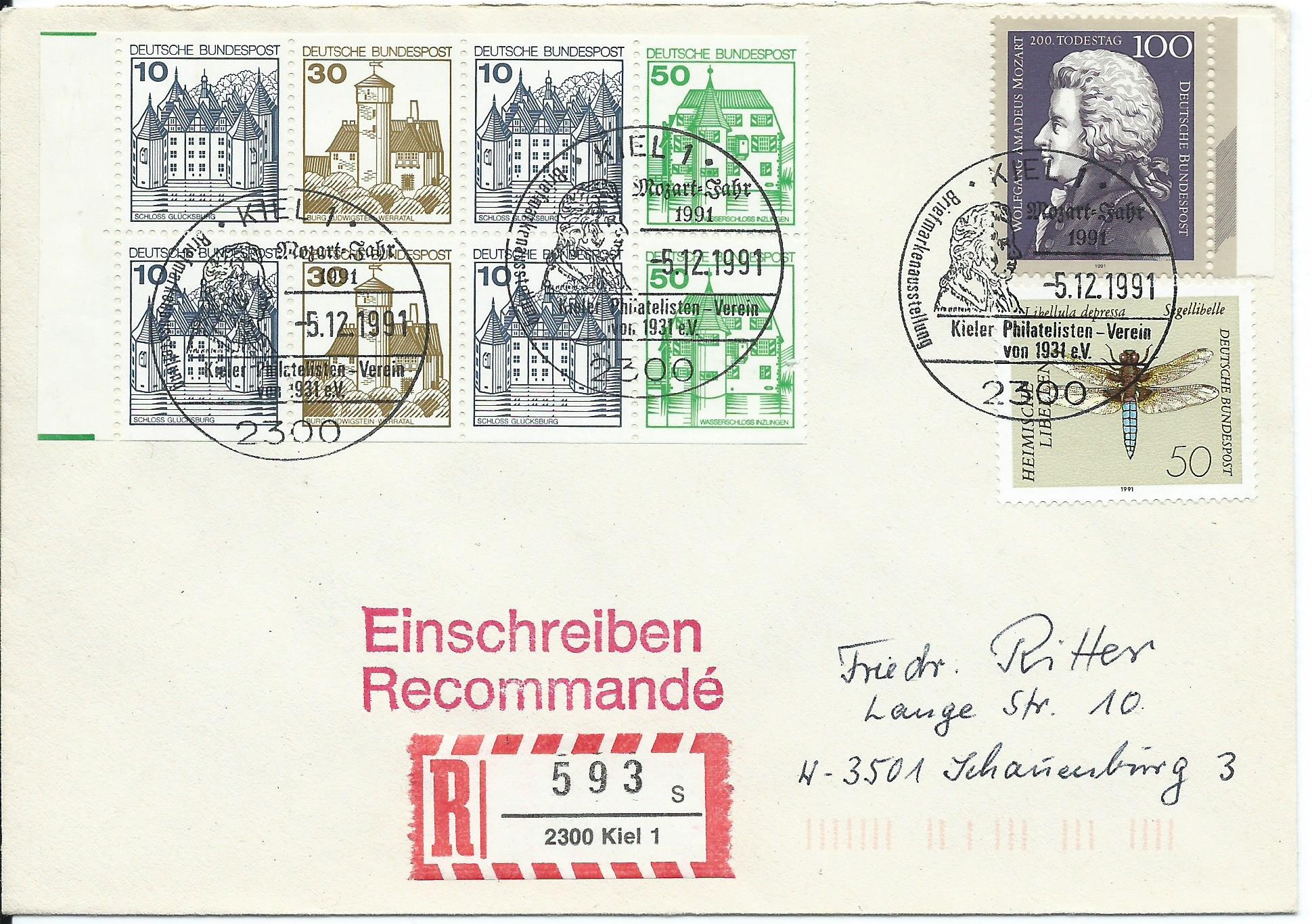Und auf Beleg mit 2 Sondermarken als Zusatzfrankatur für Einschreiben (Portostufe 3,50 DM)