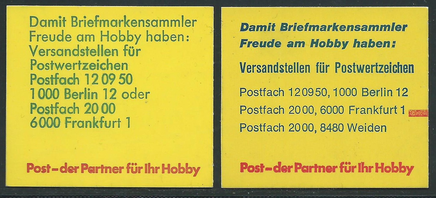 Das Heftchen 22 bekam 1990 eine überraschende Neuauflage im Druckverfahren „Letterset“ oder auch “indirekter Hochdruck“ genannt. Hier sind die Druckbilder gestochen scharf, während sie beim „normalen“ Heftchen 22 teilweise unregelmäßig sind. Der Michel unterscheidet die Heftchen mit MH 22 bzw. H.Bl.27 I (erste Ausgabe) und II (Letterset-Ausgabe). Beim kompletten Heftchen oder H.-Bl. mit Rand ist das beste Unterscheidungsmerkmal der Balken der Schnittmarkierung. Beim MH 22 I ist er schwarzviolett und beim MH 22 II (Letterset) grün.