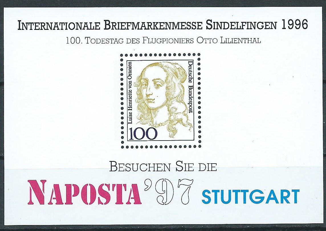 Hier zeige ich einen „postfrischen“ Block mit einer Dauerserienmarke Frauen zu 100 Pf Luise Henriette von Oranien.