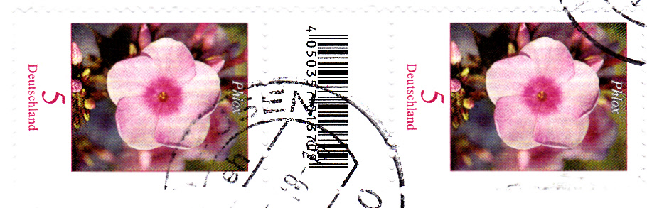 Auch bei den älteren Marken der Blumenserie aus der Rolle wurden ab 2017 gefertigten Rollen nach jeder 5. Marke (mit Nummer) ein kleines Zwischenfeld mit EAN-Codierung.